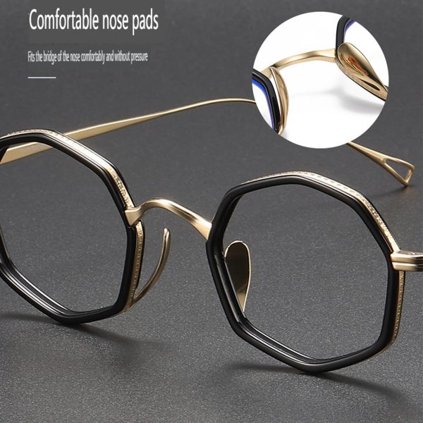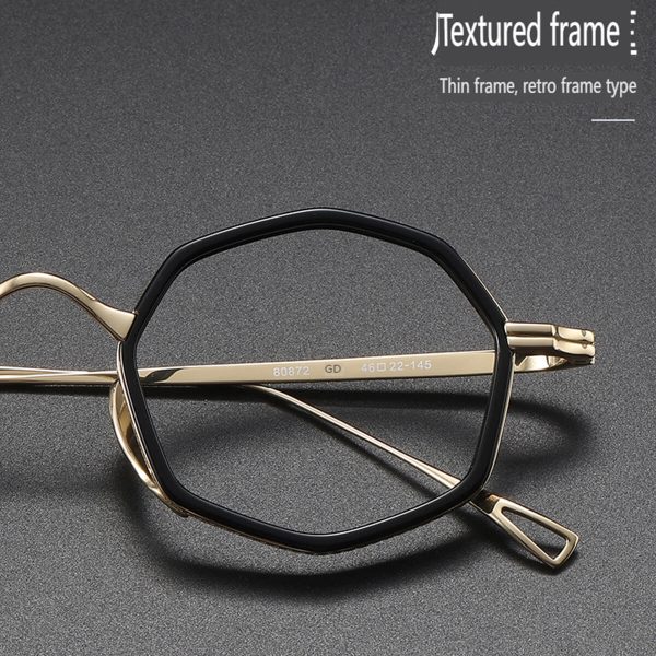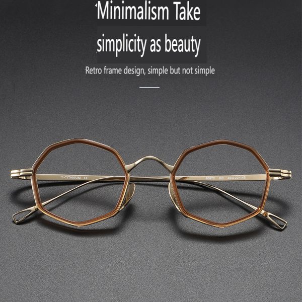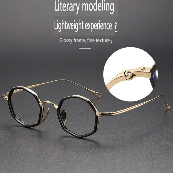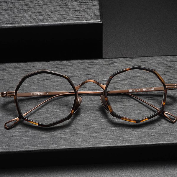 These Aspiration Pure Titanium Vintage Polygon Frames offer a unique blend of classic and contemporary styles. Designed by a team of experienced eyewear specialists, these frames feature a distinctive polygon shape that complements various face shapes, highlighting the wearer’s personal style. The frames showcase a tortoiseshell pattern made from high-quality acetate, providing a look reminiscent of natural tortoiseshell while ensuring ethical and sustainable practices. Ideal for individuals with myopia, these frames are crafted from pure titanium, offering a lightweight and durable wear experience. With a focus on style, durability, and comfort, these glasses are designed to meet the needs of the fashion-conscious and environmentally aware consumer.