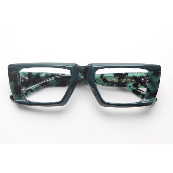 These autumn acetate polygon glasses feature a unique design with superior craftsmanship. The frame appears as a distinctive rectangle-like shape viewed from an angle, presenting five sides. This creates an innovative and modern design.When it comes to color, these glasses showcase a rich and deep green hue. The gradient effect of the frame offers a taste of retro charm while embracing a modern style, demonstrating endless possibilities of transformation. It gradually transitions from soft, light green into a deep dark green, creating a striking and unique visual appearance.Regardless of whether they’re paired with your everyday outfits or special occasion attire, these autumn acetate polygon glasses are bound to radiate unique charm and style. These glasses can be considered a must-have accessory for your autumn wardrobe.