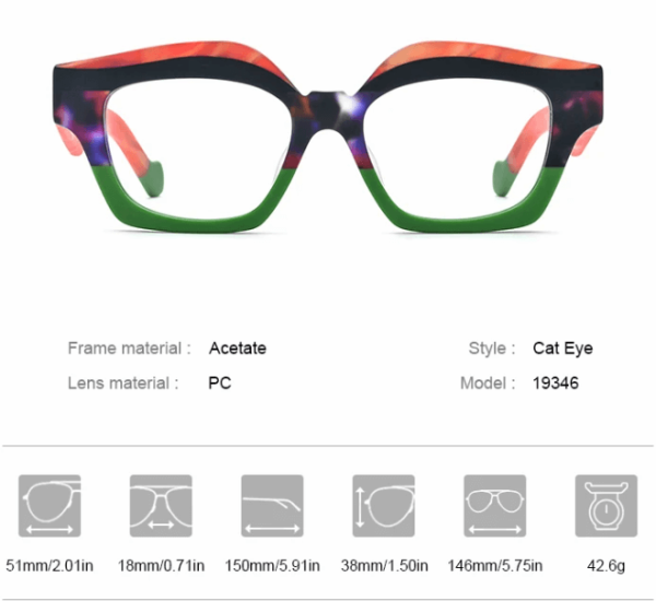 Discover a fresh take on a classic style with the Boaz Unique Acetate Cat Eye Glasses Frame. Expertly constructed with durable acetate, they reinvent the timeless cat-eye silhouette for the modern era. The design juxtaposes rounded contours with pointed edges, creating a dynamic look that exudes confidence. With an eye-catching appeal that complements any ensemble, these glasses offer both style and practicality. The frames are designed for comfort, yet never compromise on aesthetics. The Boaz Unique Acetate Cat Eye Glasses Frame invites you to express your individuality and make a sophisticated statement.