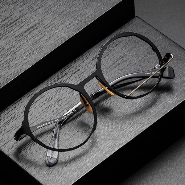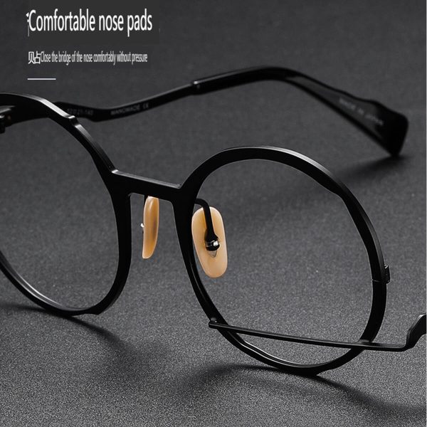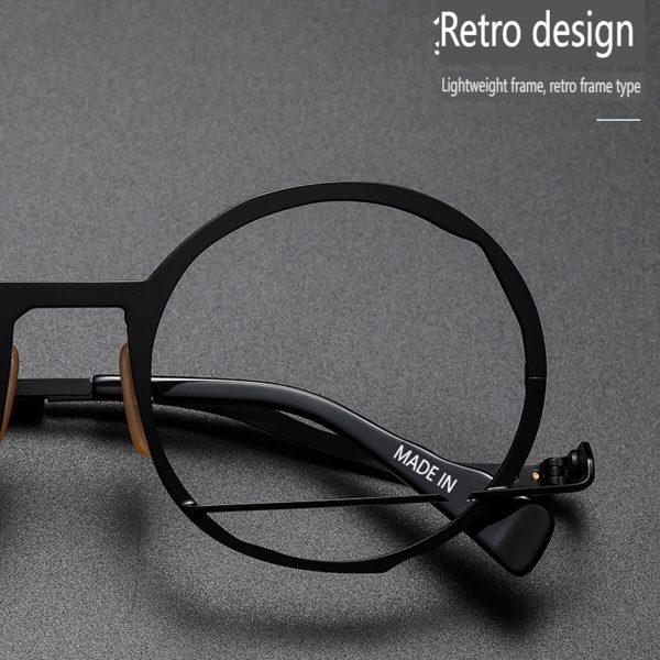 Make a statement with our Celestial Pure Titanium Retro Round Frames, a standout piece in our specialist catalogue. These frames blend a timeless round design with high-quality craftsmanship, suitable for a wide range of personal styles and particularly complementary for larger face shapes. Crafted from pure titanium, they offer both long-lasting durability and a touch of luxury. Our dedication to quality is evident in the comfort, unique design, and functionality of these frames, making them an essential addition to any fashion-forward wardrobe.