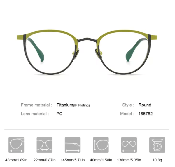 This pure titanium glasses frame is available in three colors: matte purple-yellow, red-purple, and yellow-black. Suitable for both men and women, offering a variety of color options. With a lightweight and comfortable design, paired with personalized styles, showcases unique fashion taste.