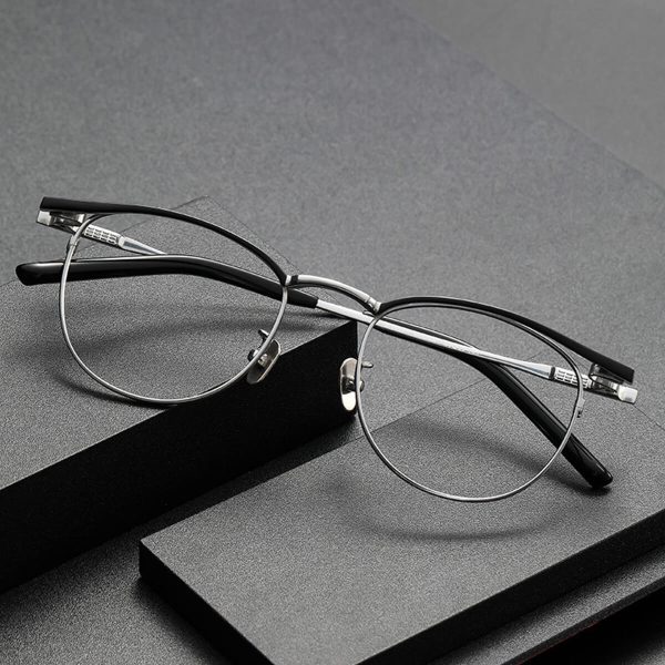 Discover the future of eyewear with our Dreamliner Pure Titanium Browline Eyewear, where elegance meets functionality. Designed for a sophisticated look that suits professional environments, these frames offer the perfect fusion of style and practicality. Equipped with the option for anti-blue light lenses, they provide essential protection against digital screen glare, making them a smart choice for anyone’s digital lifestyle. This unisex design caters to all who seek a blend of classic aesthetics with contemporary flair. Made from pure titanium, these eyeglasses guarantee durability, lightweight comfort, and a luxurious finish – showcasing our commitment to outstanding quality and wearer comfort.