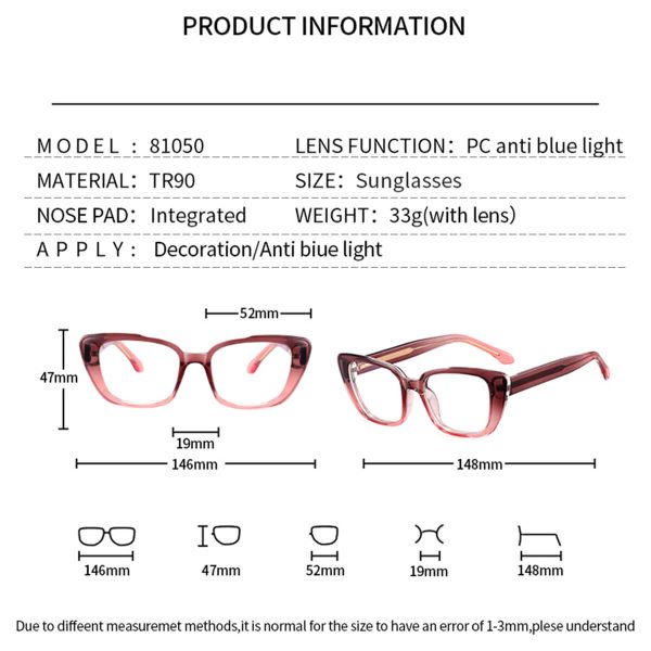 These Emma Cat Eye Glasses with TR90 Frames are the epitome of elegance and sophistication. The classic cat-eye shape adds a touch of vintage charm to any look, while the TR90 material ensures lightweight durability and flexibility for all-day comfort. Whether you’re aiming for a retro-inspired vibe or a modern twist, these glasses are the perfect accessory to elevate your style with grace and flair.