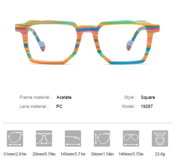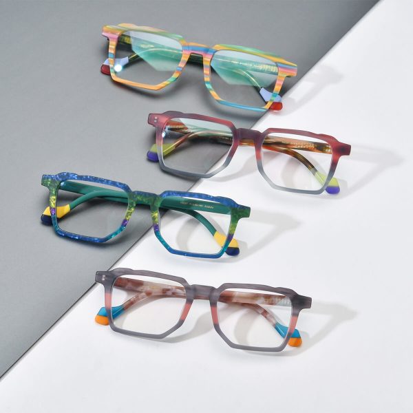 This acetate square glasses frame, with its matte finish, incorporates vibrant elements of multiple colors, showcasing a unique and innovative design. Crafted from high-quality acetate material, it exudes a contemporary charm. The addition of multiple colors adds personality and vitality to the glasses, ensuring you stand out from the crowd. Whether for everyday wear or special occasions, it allows you to express your unique taste and style.