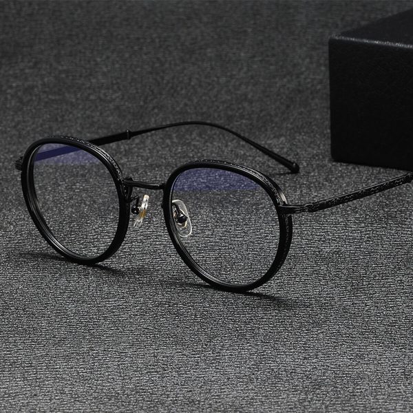 Introducing the Isabella Titanium Acetate Round Glasses, artfully combining elegance and high-tech materials. Designed with durability and comfort in mind, the use of exceptional quality titanium and acetate make these glasses a long-lasting piece. With a distinctive round design, they offer both corrective and aesthetic functions, keeping you chic and clear-sighted.
