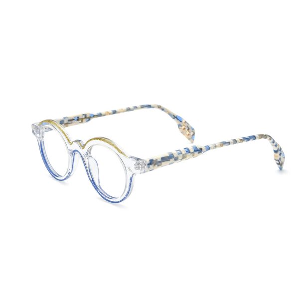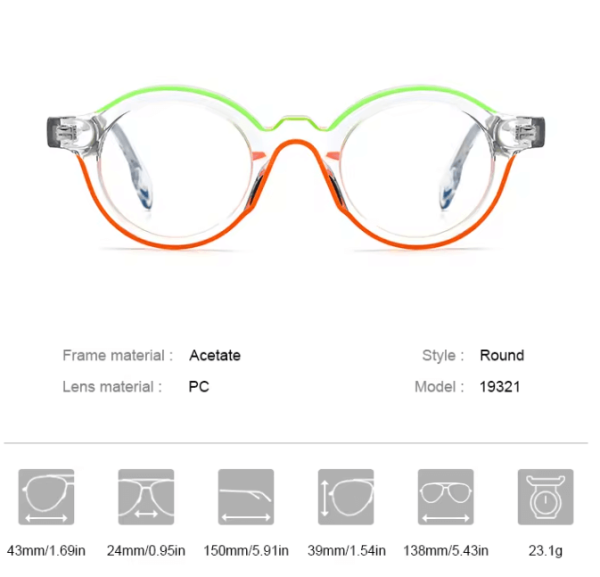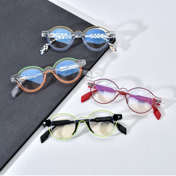 This vintage-inspired powder acetate optical glasses frame for women offers a perfect blend of fashion and personality. Crafted from lightweight powder acetate material, with its simple and elegant design, the round shape of the frame exudes classic charm, creating a novel yet retro ambiance. Whether for daily wear or special occasions, these glasses add confidence and allure to your look. Featuring exquisite craftsmanship, they ensure a comfortable wearing experience while allowing you to showcase your individuality and style.”