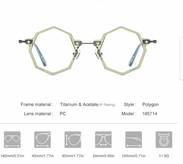This novel retro hexagonal myopia glasses frame combines elements of fashion for both men and women. Made of high-quality titanium alloy material, it is lightweight and durable, suitable for daily wear. Its unique design presents a retro style, showcasing personality and taste. Whether for everyday wear or special occasions, these glasses can add confidence and charm to your look.
