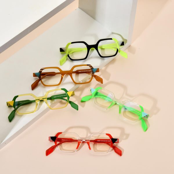 This square acetate glasses frame for men and women comes in five colors: transparent red, orange, yellow green, transparent green, and black. Crafted from high-quality acetate material, these optical prescription spectacles frames are both fashionable and functional. Whether you’re at the office or enjoying leisure time, you can find a color that suits your style. Additionally, these glasses can be customized with prescription lenses to provide you with a comfortable visual experience.