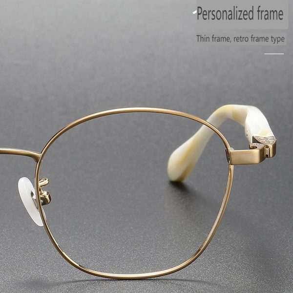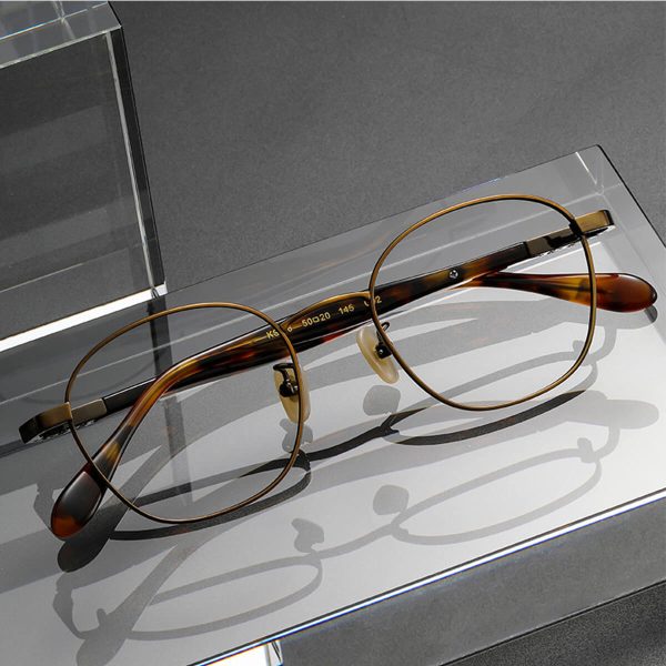 Discover the captivating charm of Shimmering Round Titanium Acetate Frames. Combining the sturdiness of titanium frame with acetate armrests for extended comfort, these glasses meet style and functionality in harmony.