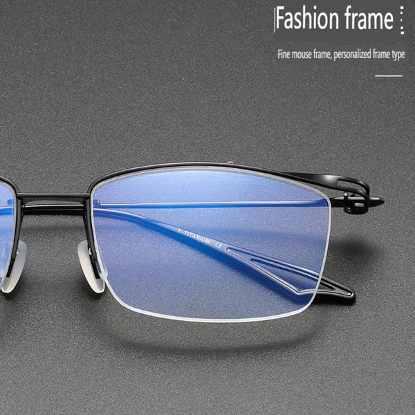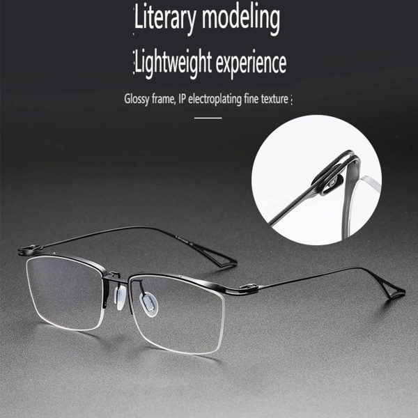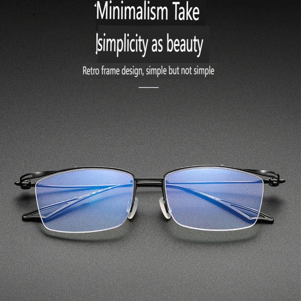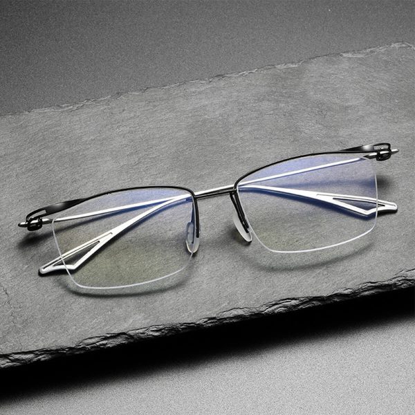 Make a bold statement with the Sundance Semi-Rim Pure Titanium Browline Frame.pure titanium glasses frame features a half-rim square design, combining style with practicality. Crafted from pure titanium, it is lightweight, durable, and offers exceptional comfort. Combined with optical prescription, these glasses are customized to provide you with clear vision. The minimalist yet classic design exudes taste and style. Whether it’s a workday or leisure time, it’s an indispensable fashion accessory.
