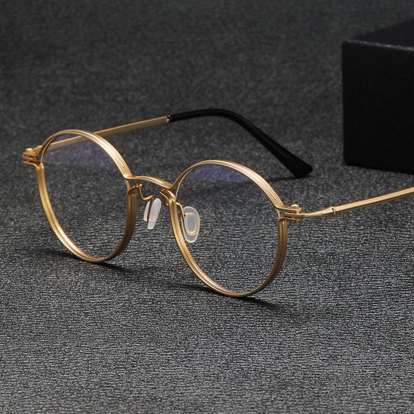 The William Retro Pure Titanium Round Glasses Frame offers a perfect blend of vintage elegance and contemporary style. Crafted from premium pure titanium, these glasses frames are not only lightweight and durable but also exceptionally comfortable for extended wear. With its classic round shape, this frame exudes timeless charm and sophistication, making it a versatile accessory for any occasion. Elevate your look with the William Retro Pure Titanium Round Glasses Frame and enjoy both fashion and functionality in one.