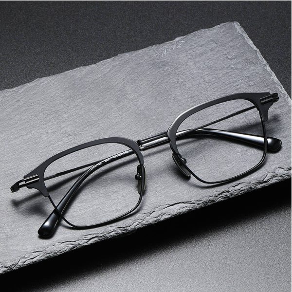 The Zenith Browline Titanium Eyeglass Frame made with pure titanium providing durability and comfort. This eyewear is suitable for business settings, accentuating professionalism and charisma. It is a pair of glasses designed specifically for men.